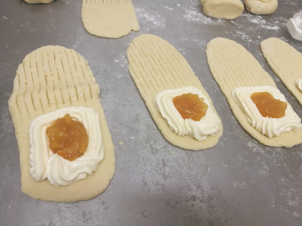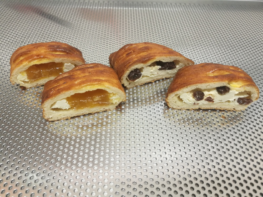 Složení: Těsto: bezlepkový pšeničný škrob, voda, bramborový škrob, cukr, Alsan rostlinný tuk (řepkový, kokosový, palmový), pitná voda, emulgátory (E471, E472c), přírodní aroma, jedlá sůl, kyselina citronová, vitamin A, D, barvivo karoteny, vaječná melanž, droždí, zahušťovadlo (E464, xantanová guma), sušený vaječný bílek, emulgátor (E471, sójový lecitin, E481, E475), psyllium, rýžový škrob, sůl, přírodní vanilkové aroma, přírodní citrónové aroma s dalšími přírodními aromaty, enzymy, barvivo karoten. Náplň tvarohová: tvaroh, vaječná melanž, cukr. Meruňkový džem: meruňky 60%, glukózo-fruktózový sirup, E1422 (modifikovaný škrob), cukr, kyselina citronová, E202 (konzervant), guma gellan, aroma, voda.