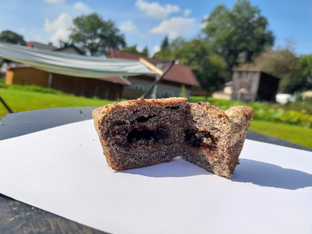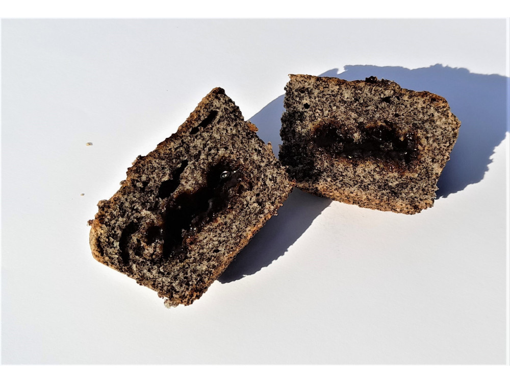 Plněný makový muffin švestkovými povidly. Bezlaktózový.