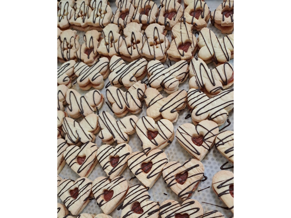 Linecké polévané hořko sladkou čokoládou a mazané rybízovou marmeládou. Voní hezky po másle, ale nově neobsahuje žádnou mléčnou složku.