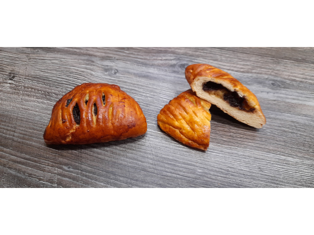 Šáteček plněný vanilkovým pudinkem a kostkami hořké čokolády.