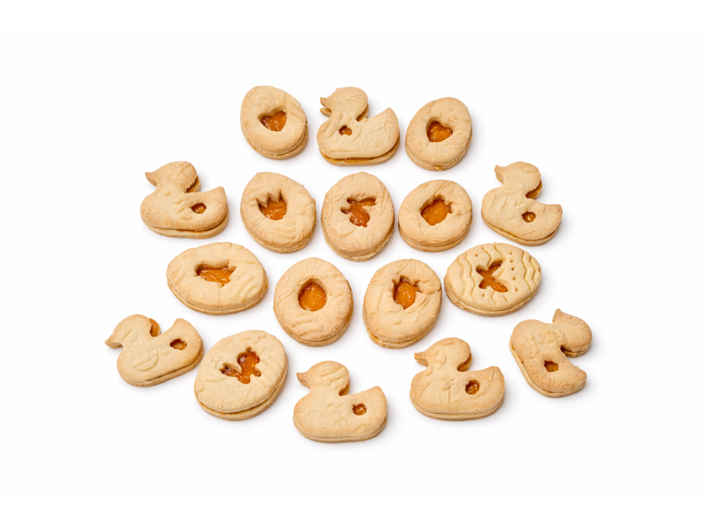 Linecké bezmléčné velikonoční sušenky mazané meruňkovou marmeládou. Voní hezky po másle, ale neobsahují žádnou mléčnou složku. S vanilkovým luskem burbon z Madagaskaru a BIO citrónovou kůrou nabízí luxusní zážitek.